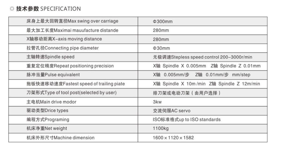 ——排刀架或電動刀架, 維護工具,地(dì)腳墊鐵,切削冷卻裝置,排屑方便,不滲油漏水。